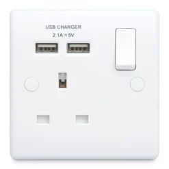 British General 800 Series 13A 1-Gang SP Switched Socket + 2.1A 2-Outlet Type A USB Charger White