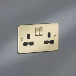 Knightsbridge FPR9000BB 13A 2-Gang DP Switched Double Socket Brushed Brass With Black Inserts