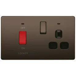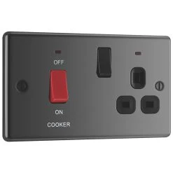 LAP 45A 2-Gang DP Cooker Switch & 13A DP Switched Socket Black Nickel With LED With Black Inserts