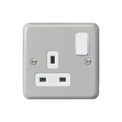 MK Contoura 13A 1-Gang DP Switched Socket + 2A 2-Outlet Type A USB Charger Grey With White Inserts