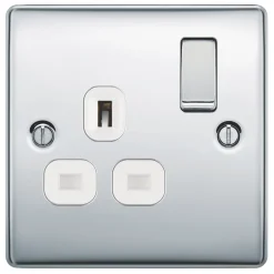 British General Nexus Metal 13A 1-Gang DP Switched Plug Socket Polished Chrome With White Inserts