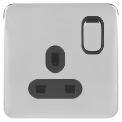 Schneider Electric Lisse Deco 13A 1-Gang DP Switched Plug Socket Polished Chrome With Black Inserts