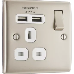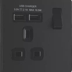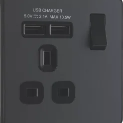 MK Contoura 13A 2-Gang DP Switched Socket + 3A 2-Outlet Type A & C USB Charger Black With Colour-Matched Inserts