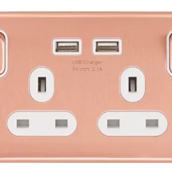 Schneider Electric Lisse Deco 13A 2-Gang SP Switched Socket + 2.1A 2-Outlet Type A USB Charger Copper With White Inserts