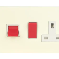 Varilight 45AX 2-Gang DP Cooker Switch & 13A DP Switched Socket White Chocolate With White Inserts
