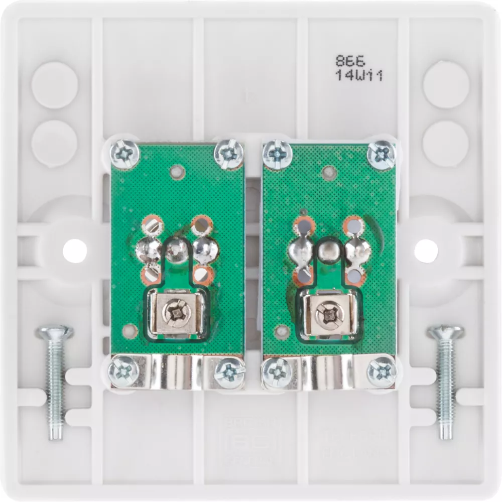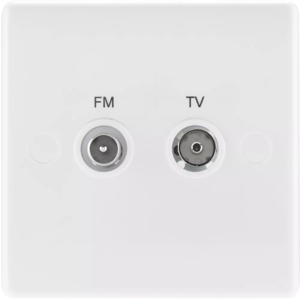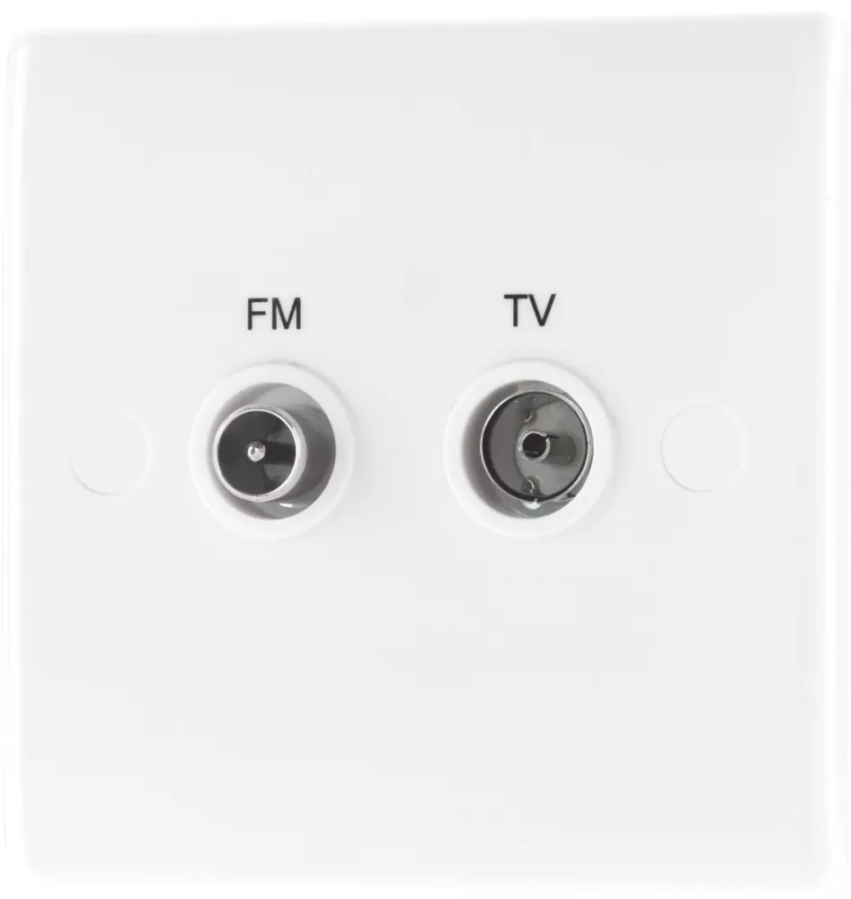 Backplate offers easy installation and has ‘FM’ and ‘TV’ printed above each outlet for clear identification. Front plate has inherent anti-microbial properties and offers high resistance to fading, discolouration and scratches. Finished with softly rounded edges and caps to conceal fitting screws.