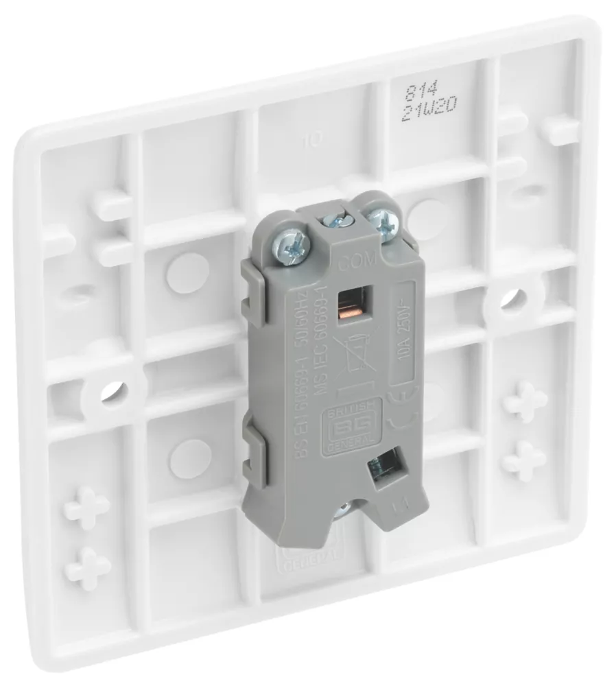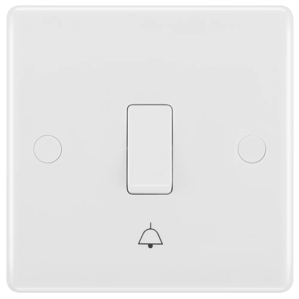 Ideal for visitors to announce their arrival where access is restricted, such as to office buildings or hospitals. Moulded white front-plate has a high resistance to fading, discolouration and scratches, with inherent anti-microbial properties, reducing bacterial development and inhibiting the growth of of infectious diseases. Features bell symbol printed below switch, soft rounded edges and screw-head covers for a sleek appearance.