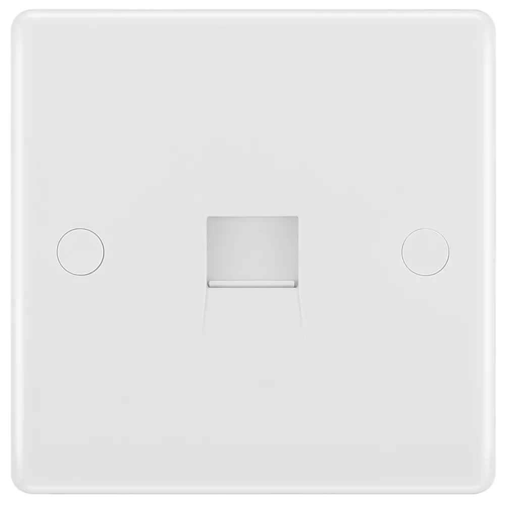 Uses an IDC terminal connection, to be used where telephone line enters the property. Master socket feeds any extension sockets. Designed with captive screws for ease of installation. Resistant to fading, discolouration and scratches. Manufactured using high grade thermoset Urea to reduce bacterial development and inhibit the growth of infectious diseases. Finished with softly rounded edges and screw caps for a sleek appearance.