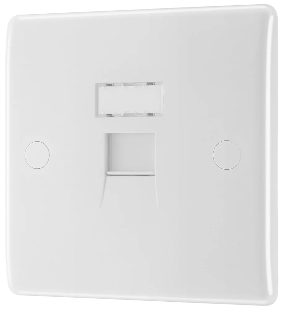Uses an IDC terminal connection. Ideal for home and office, providing a networking outlet with ID window for identification. Designed for easy installation. Resistant to fading, discolouration and scratches. Manufactured using high grade thermoset Urea to reduce bacterial development and inhibit the growth of infectious diseases. Finished with softly rounded edges and screw caps for a sleek appearance.