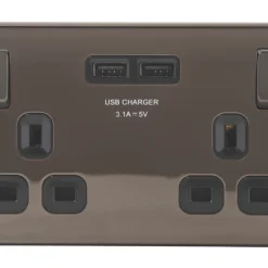 British General Nexus Metal 13A 1-Gang DP Switched Plug Socket Brushed Iridium With Black Inserts