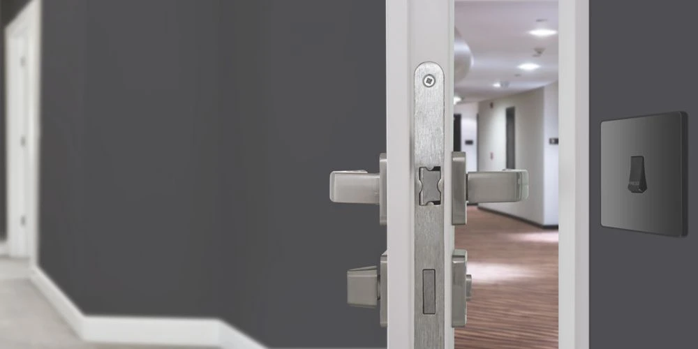 Suitable for use where access is restricted and visitors need to request entry, such as office buildings and hospitals. Features low profile, screwless flat plate that clips on and off.