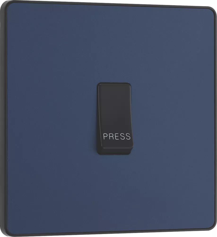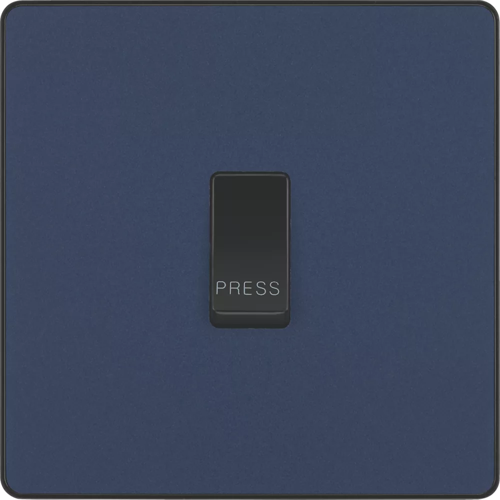 British General Evolve 10A 1-Gang 1-Way Bell Push Switch Blue With Black Inserts