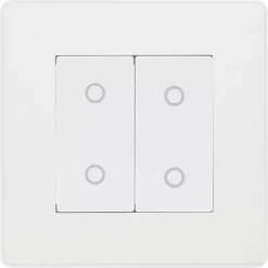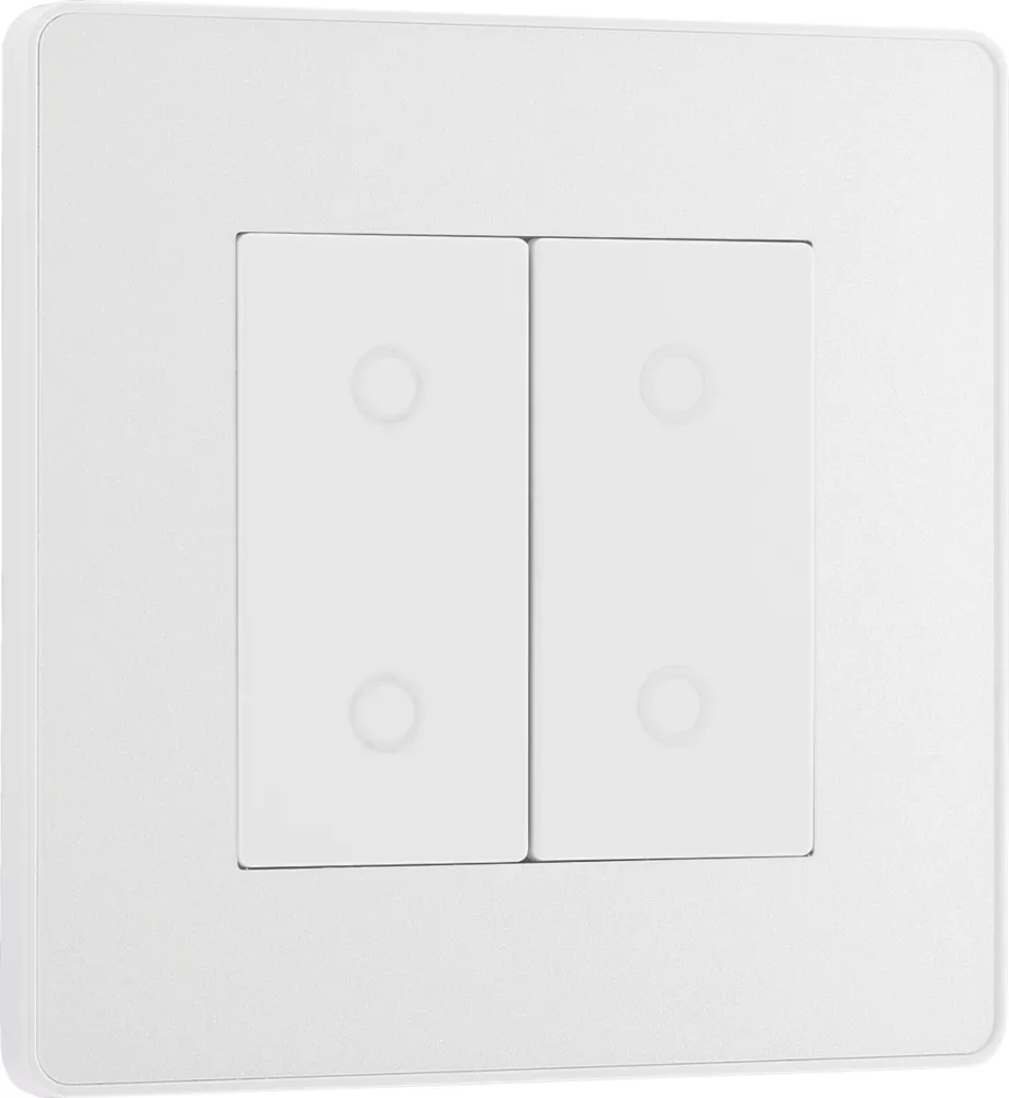 Evolve double secondary touch dimmer switch that controls light levels and sets mood. Must be in the same circuit as a master touch dimmer. Intelligent electronic circuit monitors the connected load and provides a soft-start with protection against thermal, current and voltage overload. Suitable for dimming LED, dimmable CFLs and traditional lighting. Soft-start brings the lights to a set level in around 1 second and extends the lamp life. Silent operation means no noise when dimming, while support for low wattage lamps eliminates flicker. Low profile screwless flat plate that clips on and off, ideal for modern interiors.
