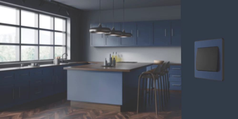 British General Evolve 20 A 16AX 1-Gang 2-Way Wide Rocker Light Switch Blue With Black Inserts