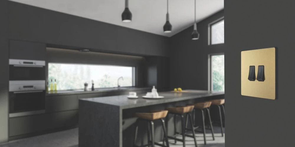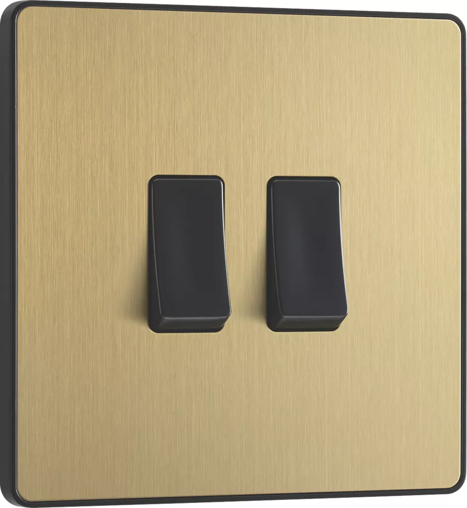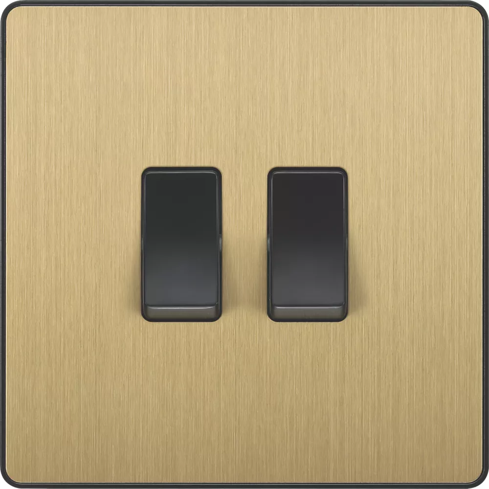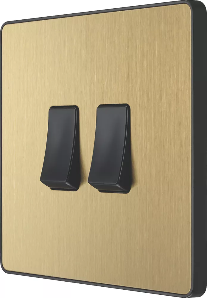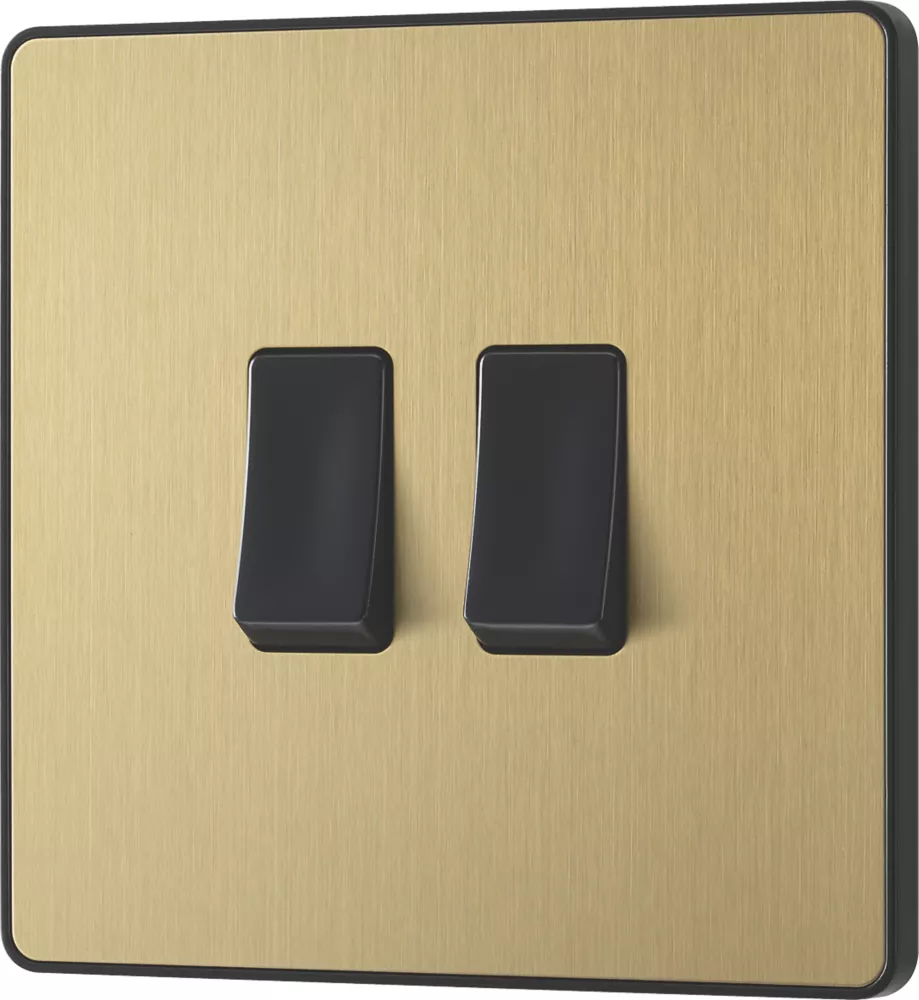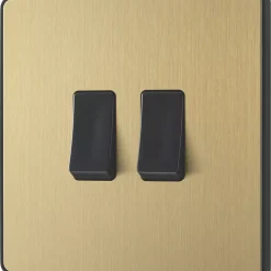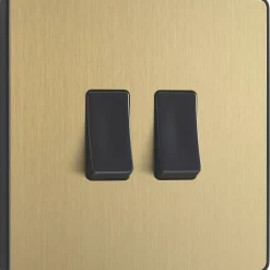 British General Evolve 20 A 16AX 2-Gang 2-Way Wide Rocker Light Switch Satin Brass With Black Inserts