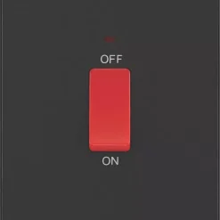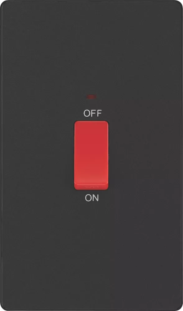 Double pole switch with low power, flush fit LED indicator, for use with cookers and ovens. Features large mounting plate (146mm x 86mm) and low profile, screwless flat plate that clips on and off, making it ideal for modern interiors.
