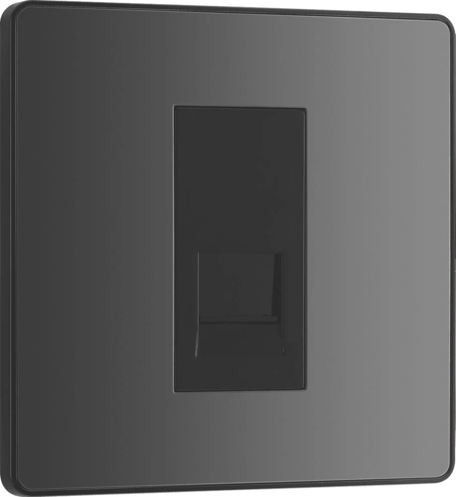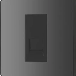 Black chrome master telephone socket with easy-to-install, screw terminal connection. Feeds extension sockets, if required. For use where telephone line enters property. Connect router here for optimum broadband performance. Features low profile, screwless flat plate that clips on and off, making it ideal for modern interiors.