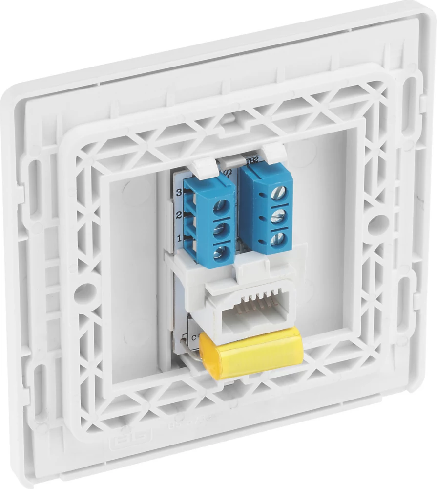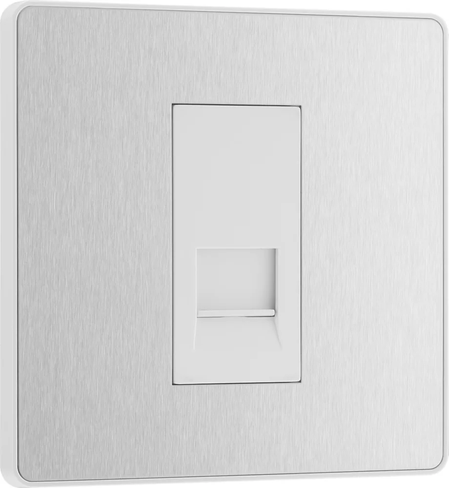 Brushed steel master telephone socket with easy-to-install, screw terminal connection. Feeds extension sockets, if required. For use where telephone line enters property. Connect router here for optimum broadband performance. Features low profile, screwless flat plate that clips on and off, making it ideal for modern interiors.