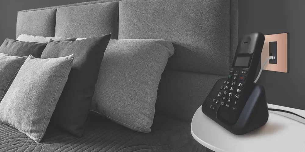 Polished copper master telephone socket with easy-to-install, screw terminal connection. Feeds extension sockets, if required. For use where telephone line enters property. Connect router here for optimum broadband performance. Features low profile, screwless flat plate that clips on and off, making it ideal for modern interiors.