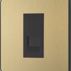 Satin brass master telephone socket with easy-to-install, screw terminal connection. Feeds extension sockets, if required. For use where telephone line enters property. Connect router here for optimum broadband performance. Features low profile, screwless flat plate that clips on and off, making it ideal for modern interiors.