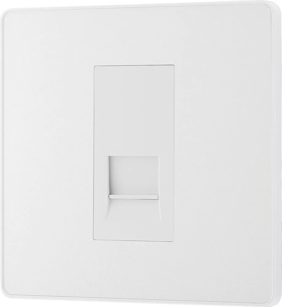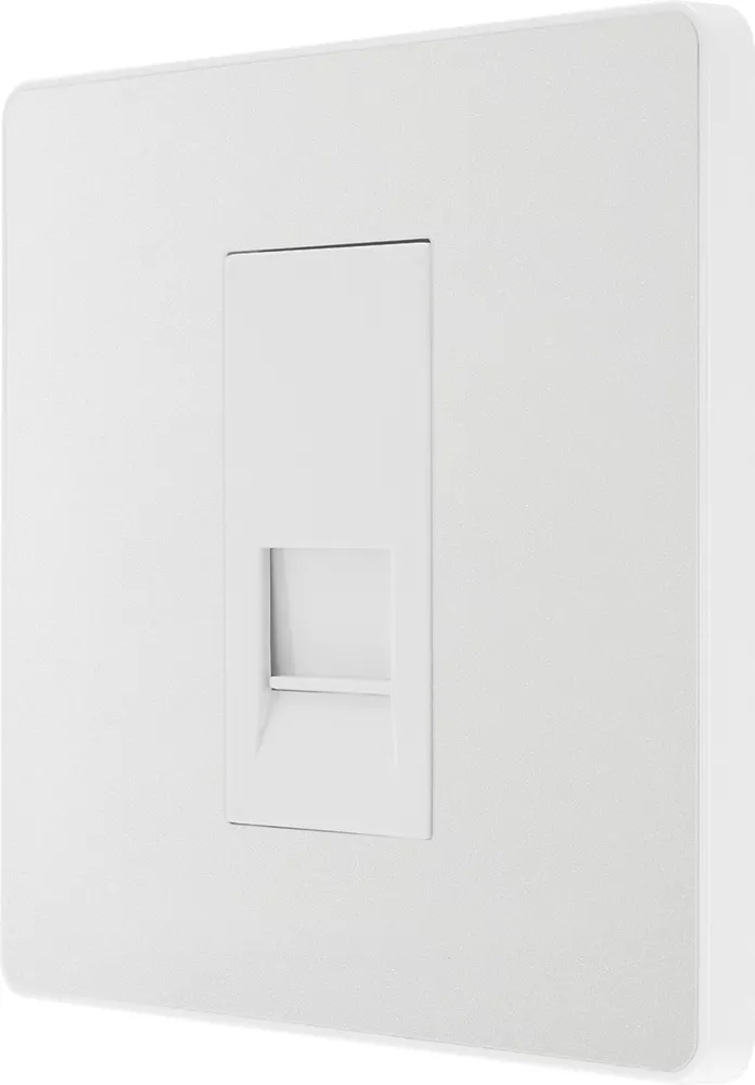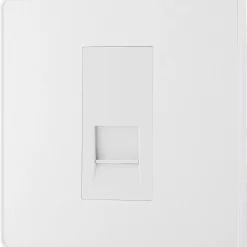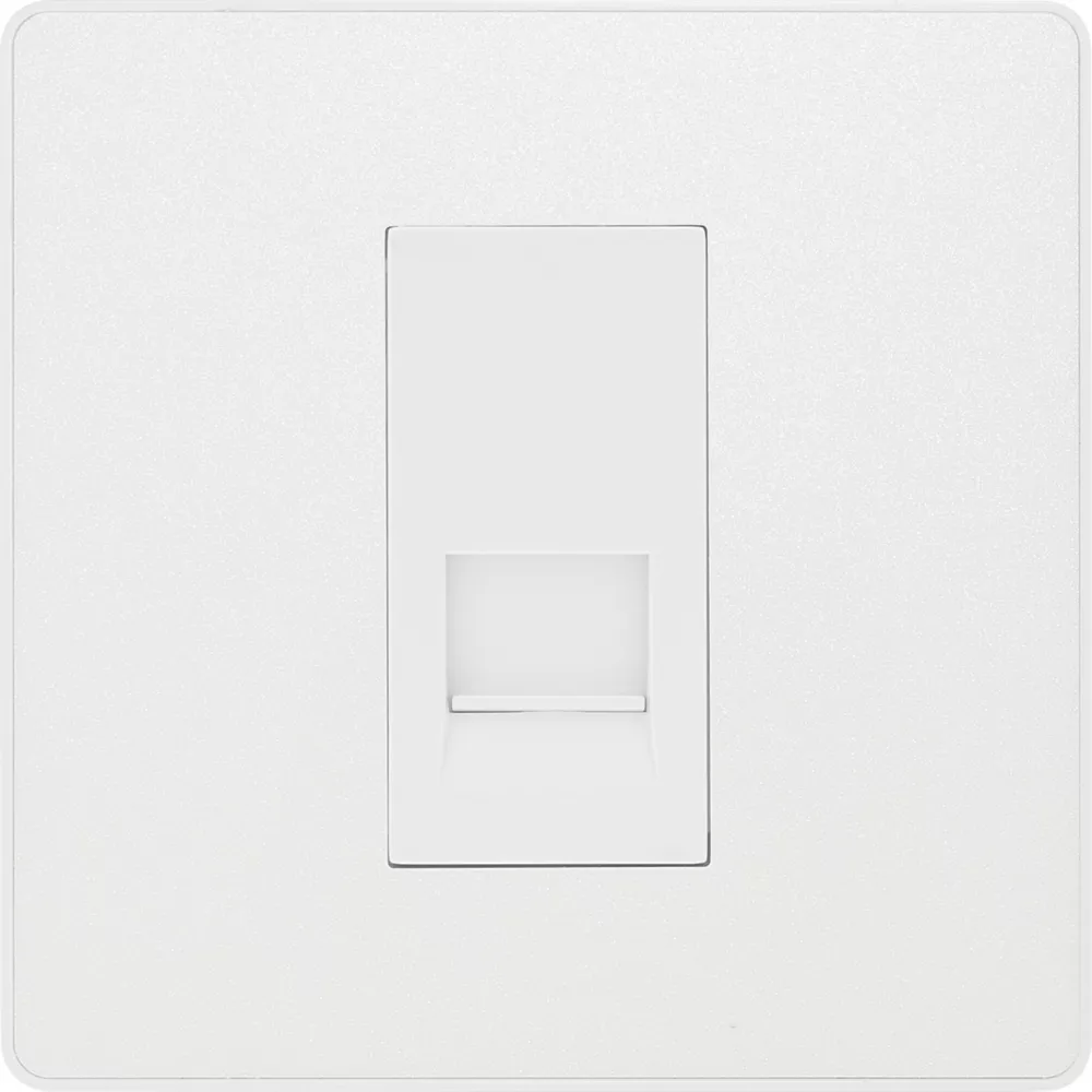 Pearlescent white secondary telephone socket with easy-to-install, screw terminal connection. For use as additional telephone point, feeding from master telephone socket. Features low profile, screwless flat plate that clips on and off, making it ideal for modern interiors.