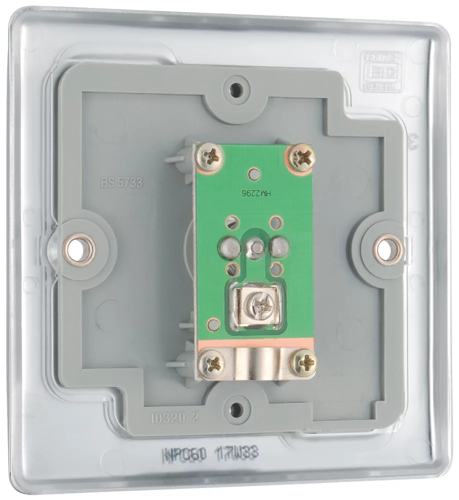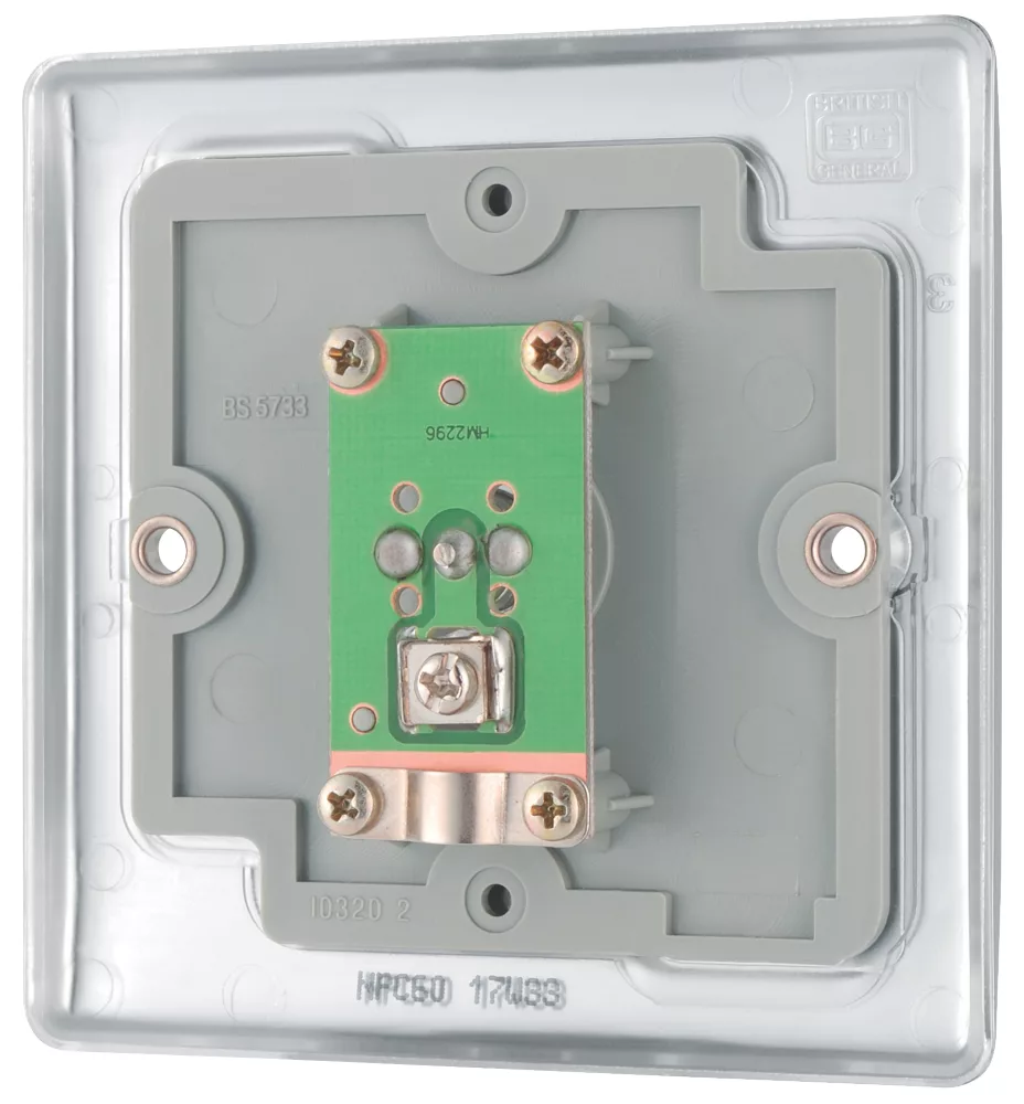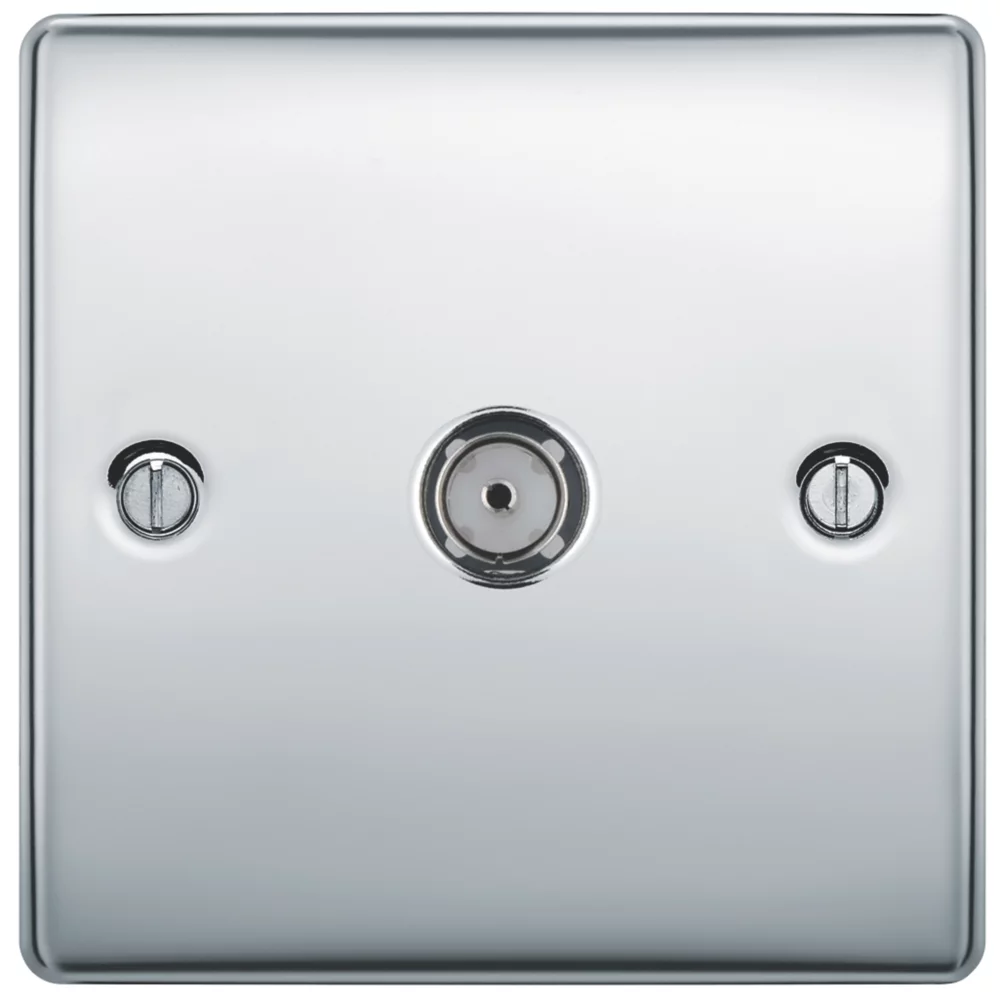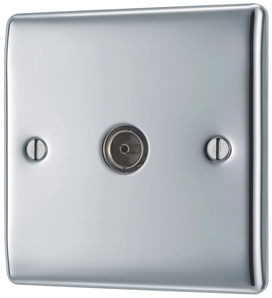 Female TV coaxial socket. Sleek, slim design with soft rounded corners.