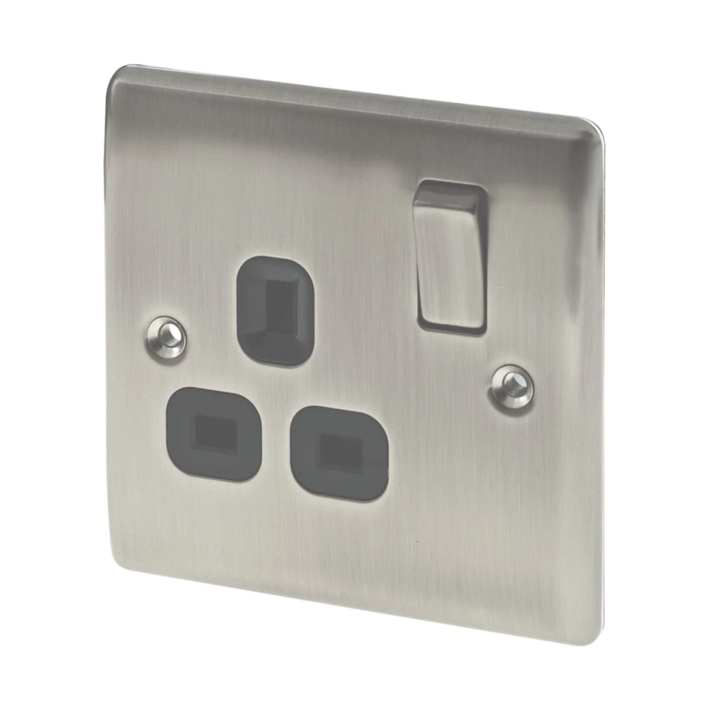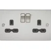 Knightsbridge FPR9000BC 13A 2-Gang DP Switched Double Socket Brushed Chrome With Black Inserts