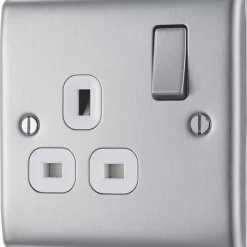Ideal retro-fit replacement for existing sockets. Twin earth fitted as standard for high integrity circuits. Features moisture control gasket, preventing tarnishing from new plaster, no visible plastic around the switch and sleek and slim premium metal with softly rounded edges for a luxurious finish.
