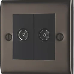 For TV or FM coaxial aerial connections with 2 connection points. Features moisture control gasket, preventing tarnishing from new plaster, premium finish, sleek and slim profile and softly rounded edges. Easy to install. Supplied as kit of Euro Module components.