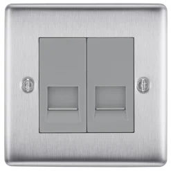 Uses a screw terminal terminal connection and can be used to connect 2 analogue phone lines. Features moisture control gasket to prevent tarnishing from new plaster. Finished with anti-fingerprint lacquer and softly rounded edges for a sleek appearance.