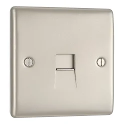 Master telephone socket with easy-to-install, screw terminal connection. Feeds extension sockets, if required. For use where telephone line enters property. Connect router here for optimum broadband performance. Features slim profile with rounded edges and moisture control gasket to prevent tarnishing from new plaster.