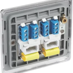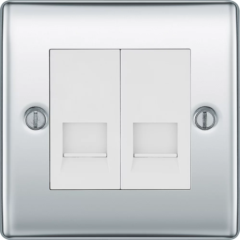 Uses screw terminal connection, to be used where telephone line enters the property. Master socket feeds any extension sockets. Features moisture control gasket to prevent tarnishing from new plaster. Finished with softly rounded edges for a sleek appearance.