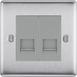Uses a screw terminal connection and can be used for additional telephone points which feed from the master telephone socket. Features moisture control gasket to prevent tarnishing from new plaster. Finished with anti-fingerprint lacquer and softly rounded edges for a sleek appearance.