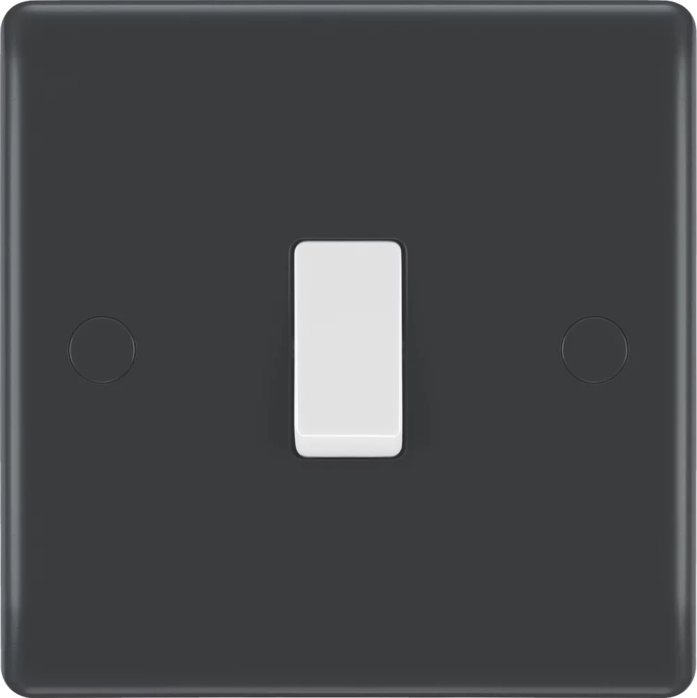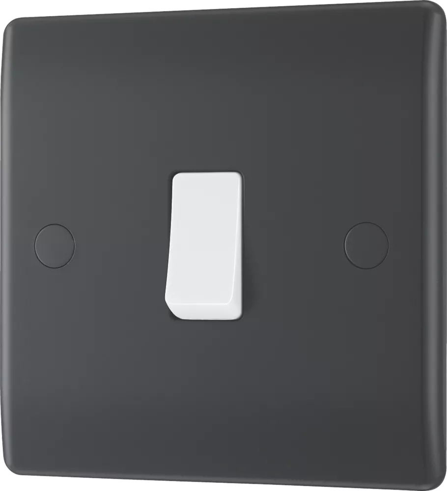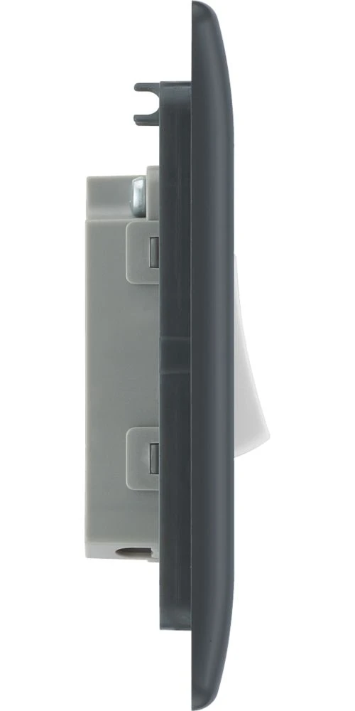 Part M compliant 16AX light switch. White rocker switch with a contrasting charcoal faceplate.