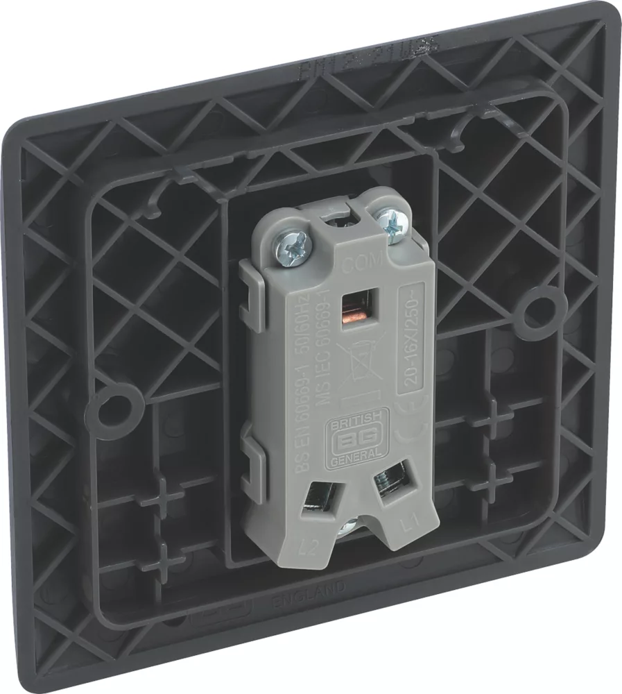 British General Nexus Metal 5A 1-Gang Unswitched Round Pin Socket Black Nickel With Black Inserts