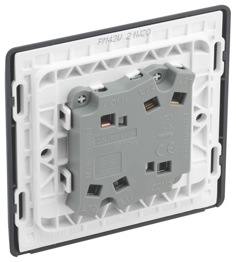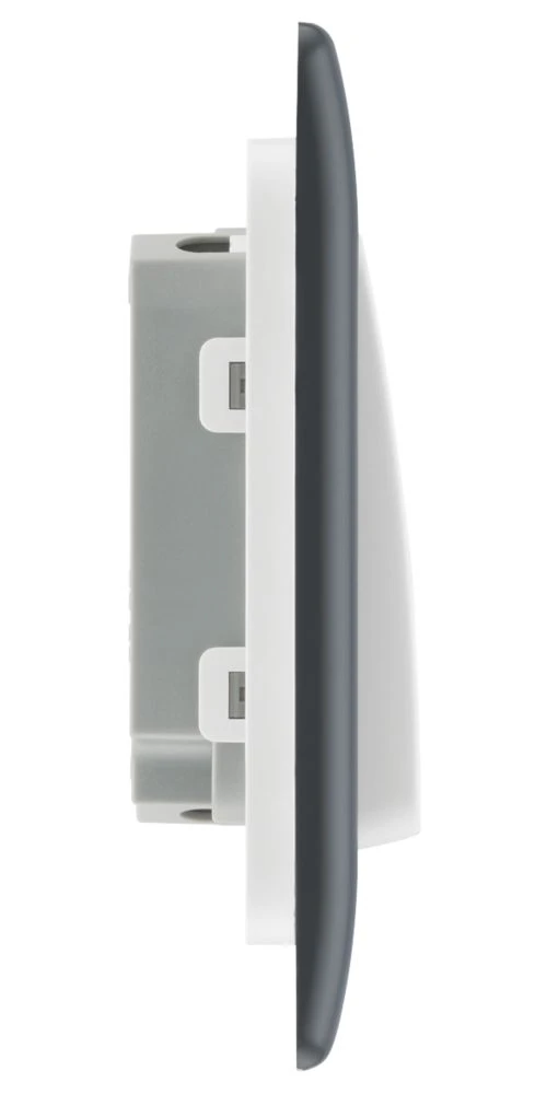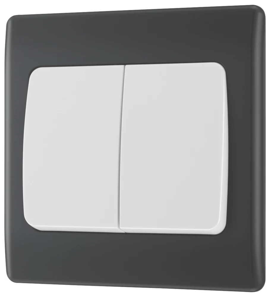 Part M compliant 16AX light switch. Wide white rocker switch with a contrasting charcoal faceplate.