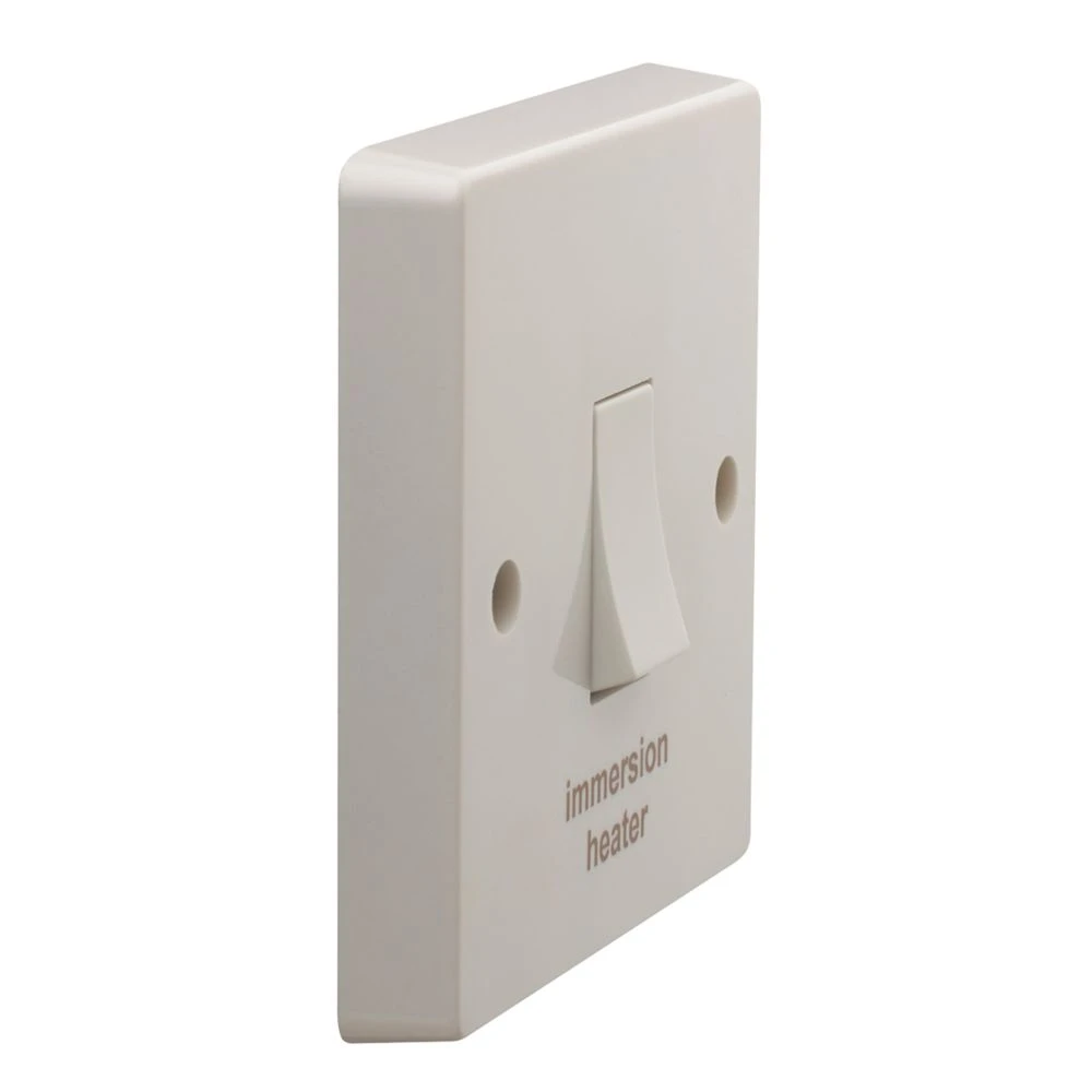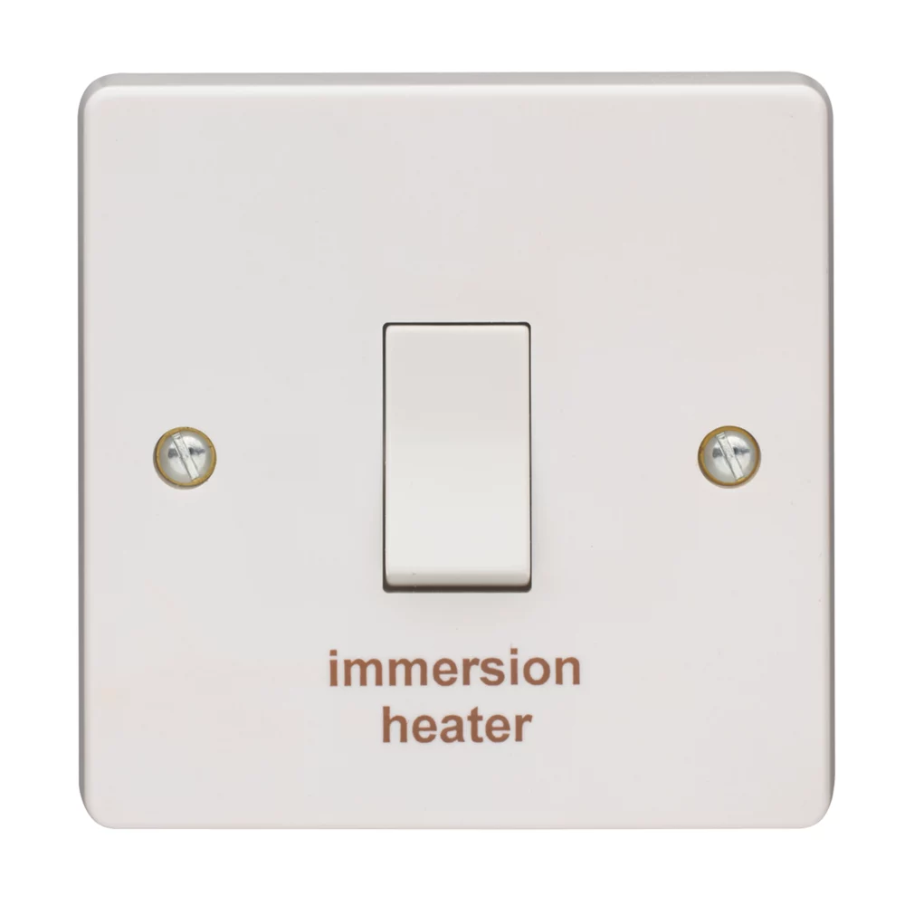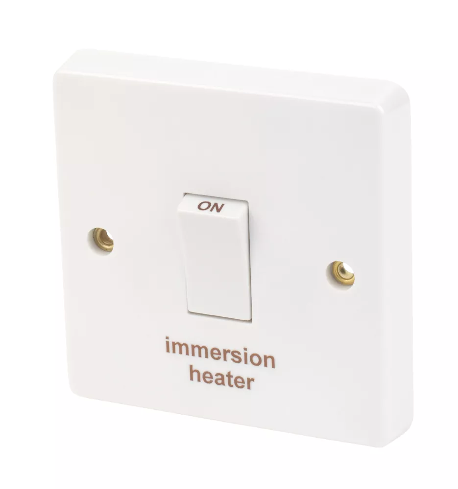 20A double pole switch. Marked ‘immersion heater’. Concealed fixings