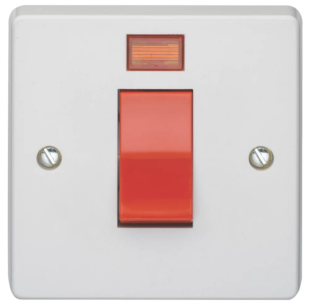 Fitted with 2 x earthing terminals and dual screw terminals to ensure secure cable fixing. Positive drive action prevents switch balancing between ‘on’ and ‘off’ positions. Neon indicator.