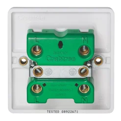50A double-pole switch. Slim faceplate with curved top and bottom edges. Optimised interiors provide more wiring space reducing risk of cables being crushed. Depth consistent with other products in the Crabtree Instinct range.
