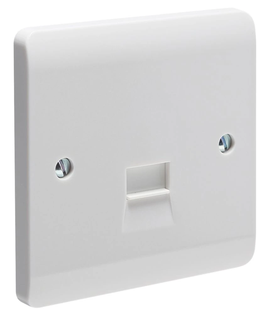 Master telephone socket with a stylish slim faceplate with curved top and bottom edges. Monobloc design gives a sleek appearance and retains the plate integrity.