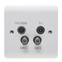 Stylish flat plate design with screwless metal front plate and concealed fixing screws. Interior fixes in place first, allowing neater decoration around product before fitting clip-on front plate.