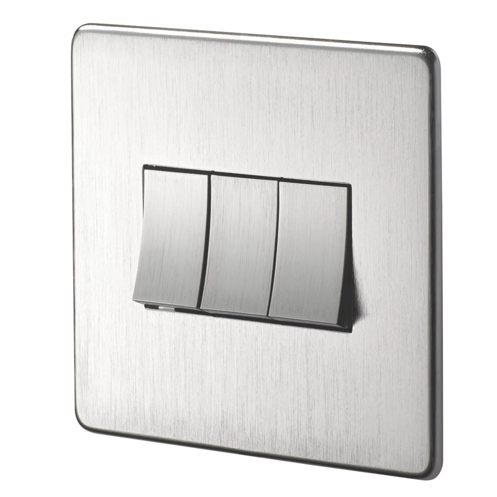Stylish flat plate design with screwless metal front plate and concealed fixing screws. Interior fixes in place first, allowing neater decoration around product before fitting clip-on front plate.