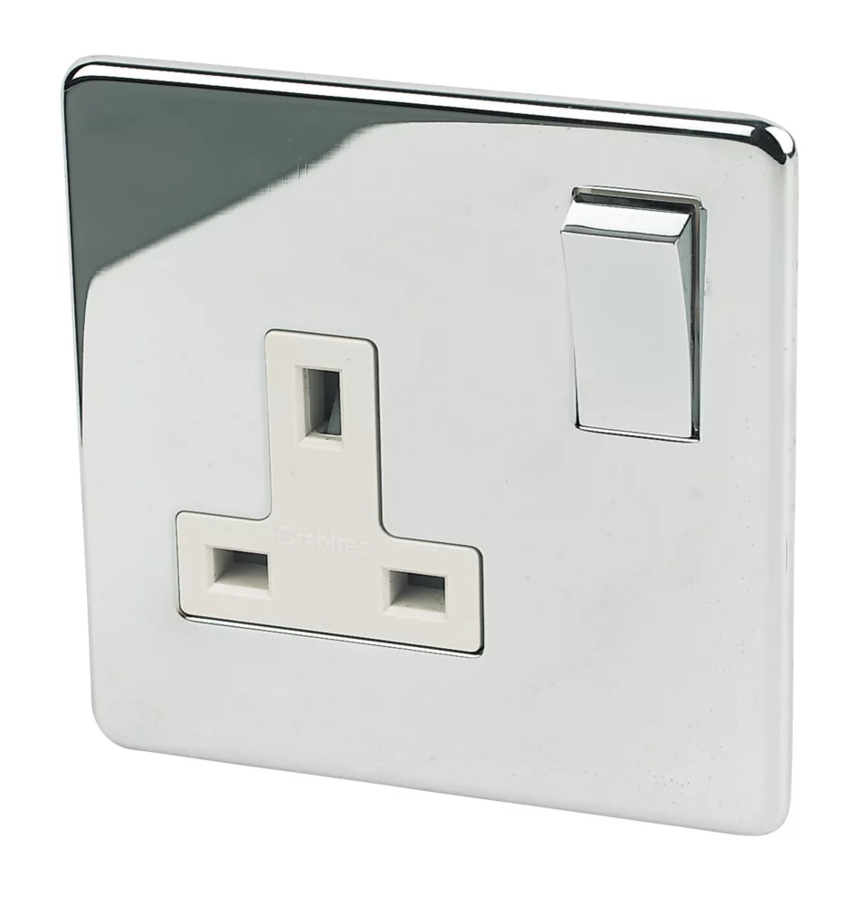 Stylish, low profile contemporary design with screwless metal front plate and concealed fixing screws. Wide, concave rockers for ease of use. Interior fixes in place before fitting clip-on front plate, ideal for neater decoration around the socket. Positive drive switch action prevents balancing between on and off positions.