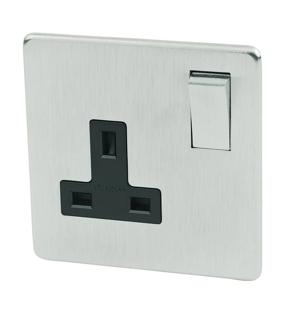 Stylish, low profile design with black insert, screwless metal front plate and concealed fixing screws. Interior fixes in place first, allowing neater decoration around product before fitting clip-on front plate.