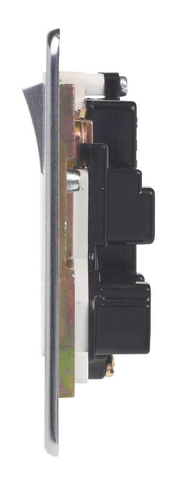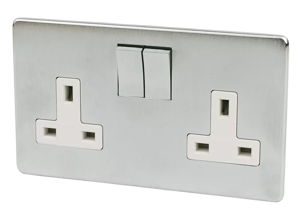 Stylish Brushed Chrome design with screwless metal front plate and concealed fixing screws. Interior fixes in place first, allowing neater decoration around product before fitting clip-on front plate.