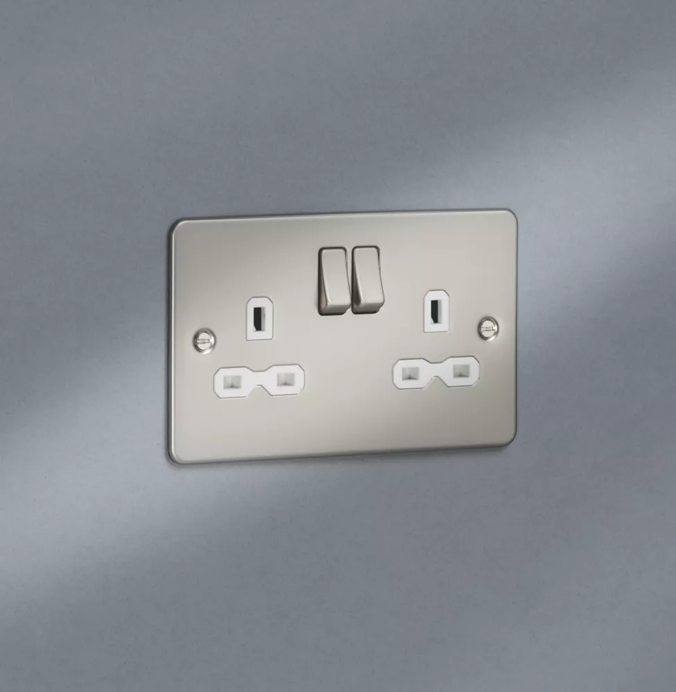 Flat plate design constructed from premium grade steel, with matching metal rockers. Socket inserts are completely hidden when plug is inserted. Built-in gasket.