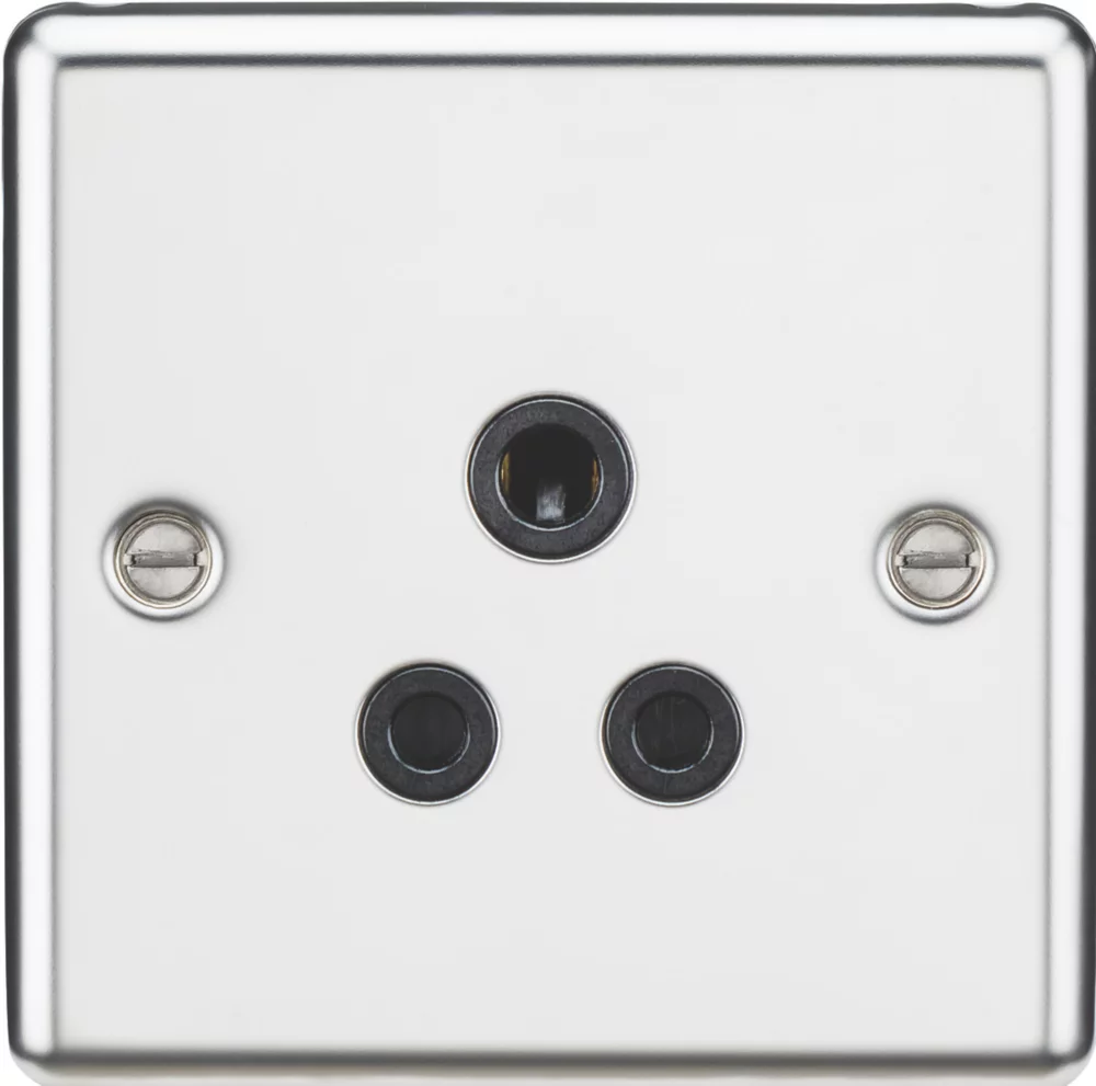 Round pin socket with built-in gasket. Raised, rounded-edge metal design. Ideal for use in custom lighting solutions.