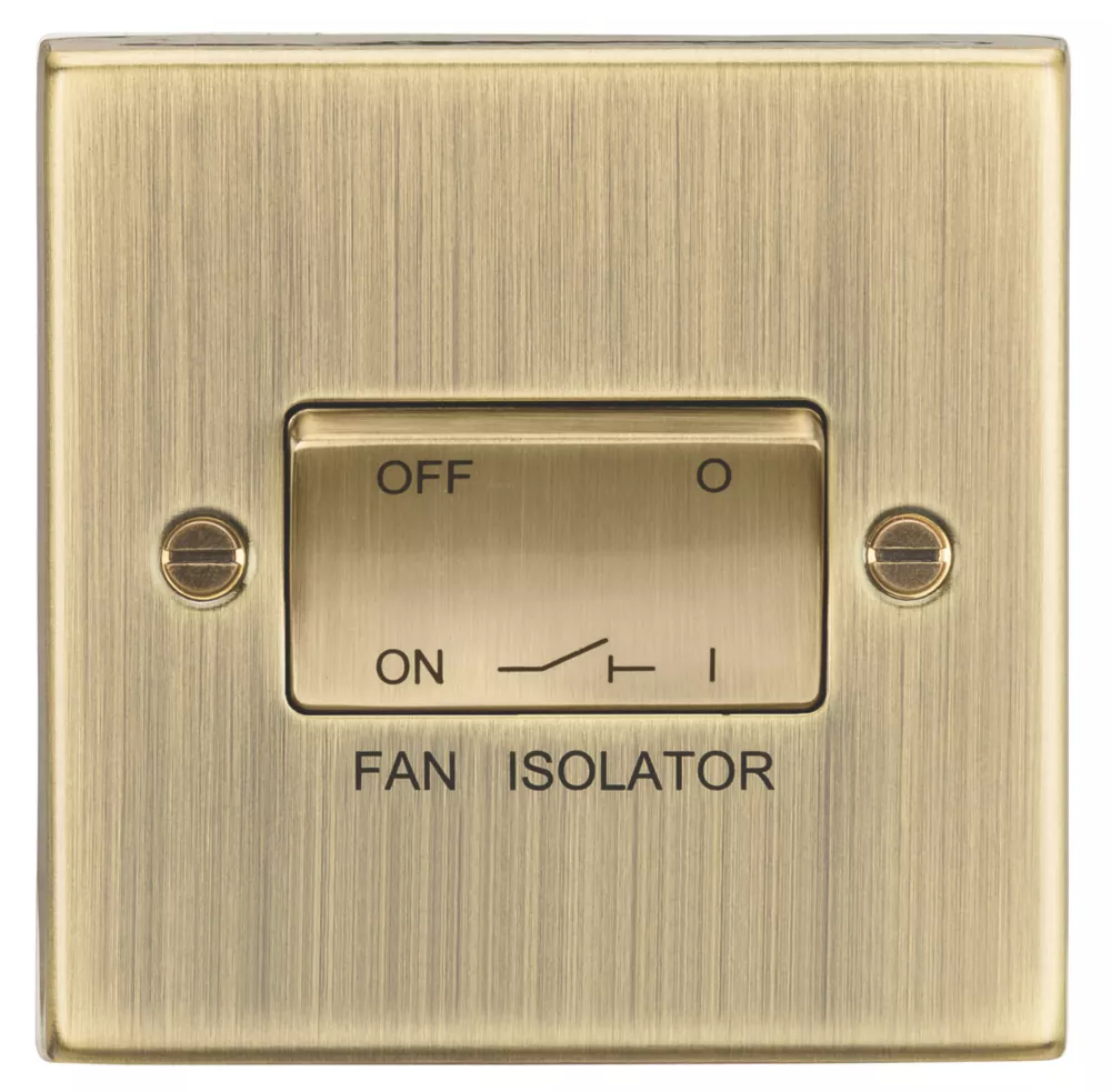 Raised, square-edge metal design with built-in gasket. Provides a safe and simple method of isolating fan units in rooms such as en-suite bathrooms, family bathrooms, utility rooms and store rooms. Matching metal rocker.