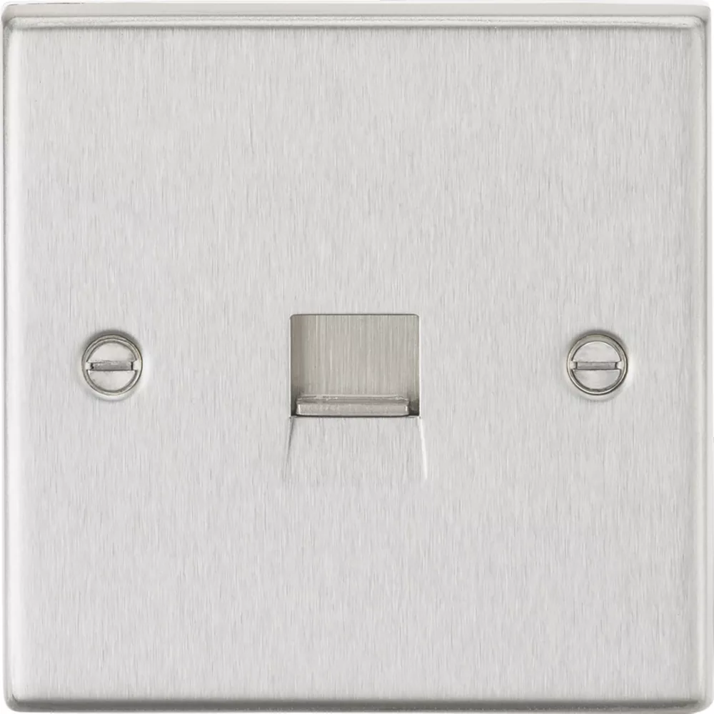 Raised, square-edge metal design master socket with screw type terminals. Contains surge arrestor and R/C circuit filter. Built-in gasket. Standard BT-type socket.