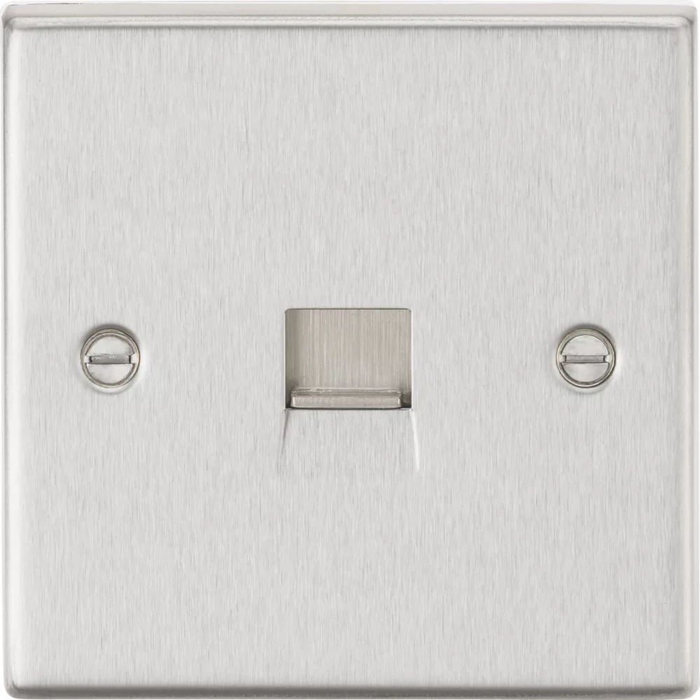 Raised, square-edge metal design secondary or extension telephone socket with screw-type terminals. Suitable for running additional points from the original master socket. Built-in gasket. Standard BT-type socket.